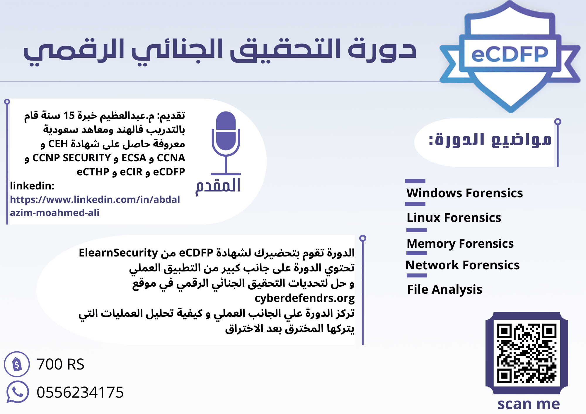 دورة التحقيق الجنائي الرقمي شهادة eCDFP | Cybersaz Academy
