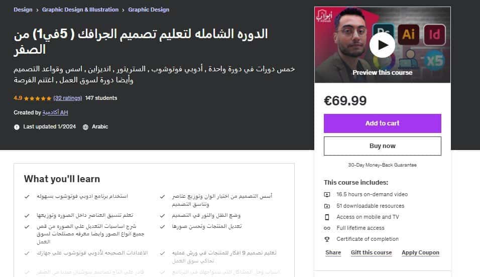 الدوره الشامله لتعليم تصميم الجرافك ( 5في1) من الصفر